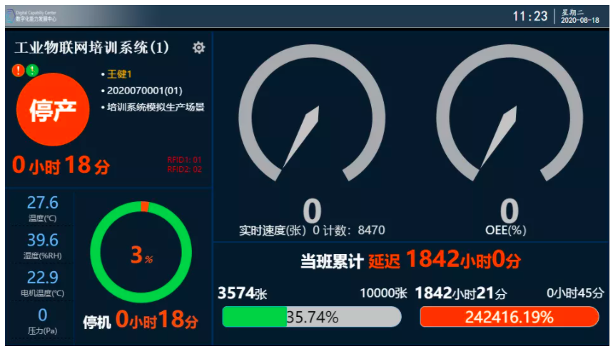 系統(tǒng)可模擬多個場景,包括印刷車間、工廠車間作業(yè)環(huán)境溫濕度采集與本地報警功能、倉庫流轉(zhuǎn)、上位機(jī)控制、車間設(shè)備工作狀態(tài)顯示。學(xué)生可以從工業(yè)物聯(lián)網(wǎng)概念、物聯(lián)網(wǎng)技術(shù)、生產(chǎn)管理、數(shù)字化改造創(chuàng)新等方面進(jìn)行學(xué)習(xí)。