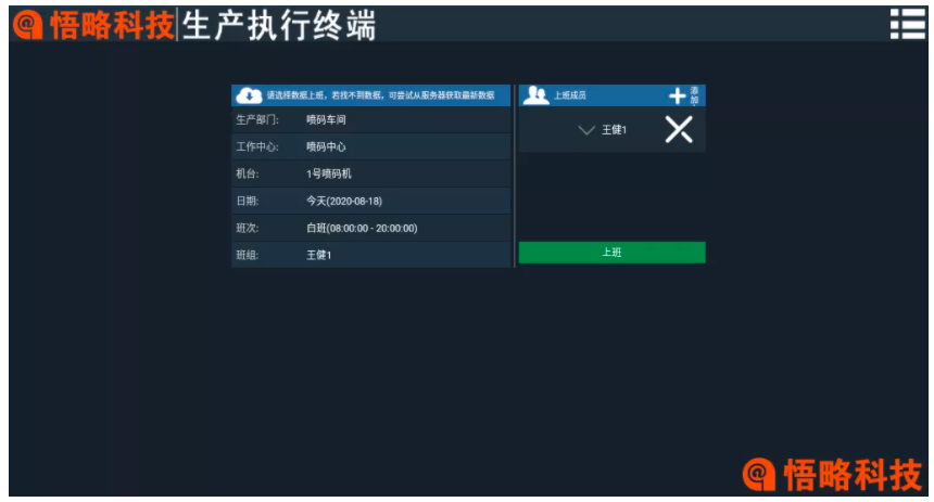 生產(chǎn)執(zhí)行終端APP中可以模擬車間工人執(zhí)行生產(chǎn)作業(yè)情況。例如選擇車間、機(jī)臺、班次、班組等等。